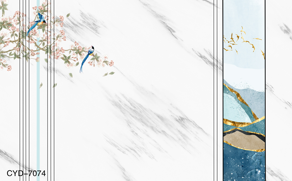 CYD-7074 后现代工笔花鸟抽象金箔纹理背景墙.jpg