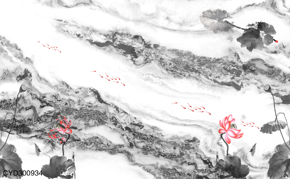 CYD300934 新中式金箔禅意纹理荷花背景墙.jpg