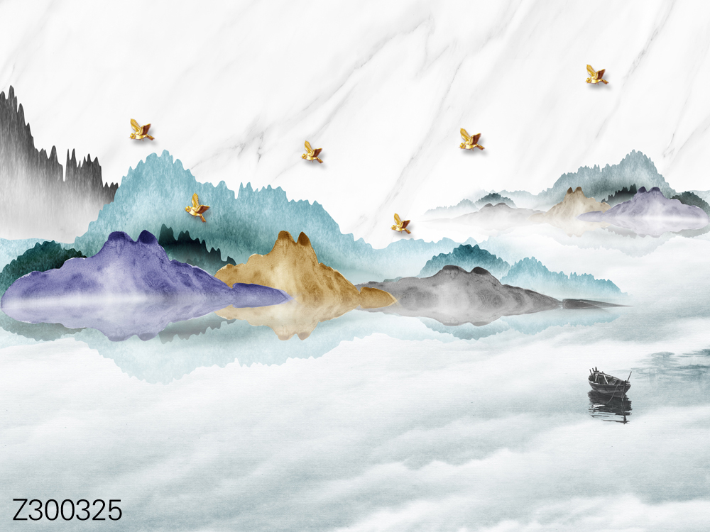 Z300325-新中式意境山水小船小鸟背景墙.jpg