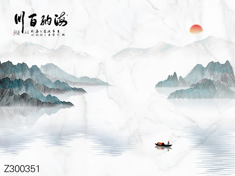 Z300351-新中式意境山水小船太阳背景墙.jpg