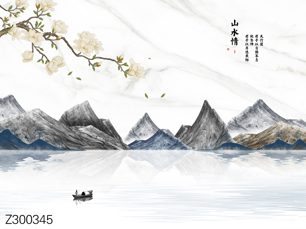 Z300345-新中式意境山水花枝小船诗词背景墙.jpg