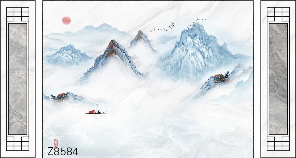 Z8579-新款原创轻奢意境整体大板山水小船祥云飞鸟元素客厅电视沙发背景墙装饰画.jpg