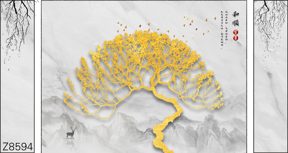 Z8594-新款原创轻奢意境整体大板山水树木麋鹿飞鸟诗词元素客厅电视沙发背景墙装饰画.jpg