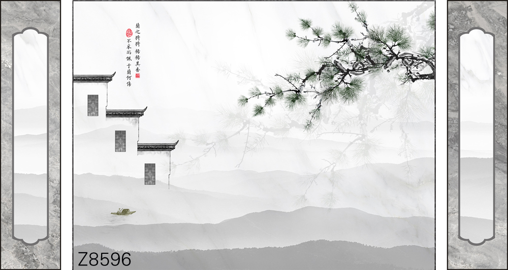 Z8596-新款原创轻奢意境整体大板房屋小船松树诗词元素客厅电视沙发背景墙装饰画.jpg