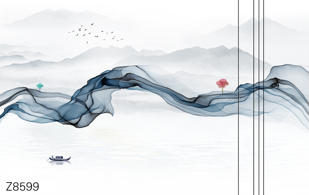 Z8599-新款原创轻奢意境整体大板山水小船飘带树木元素客厅电视沙发背景墙装饰画.jpg