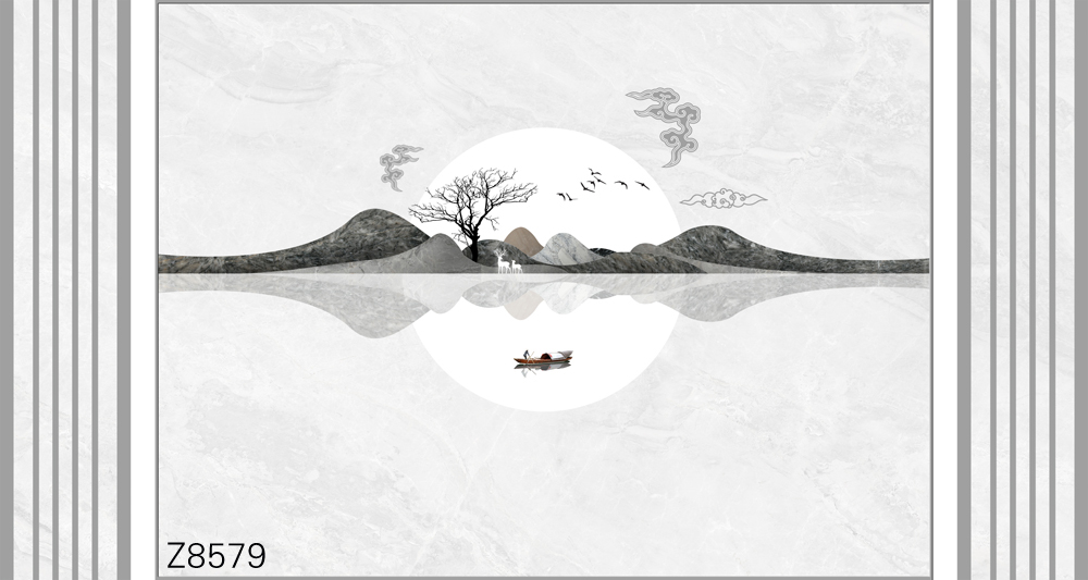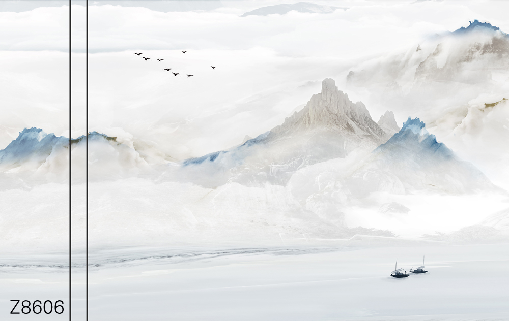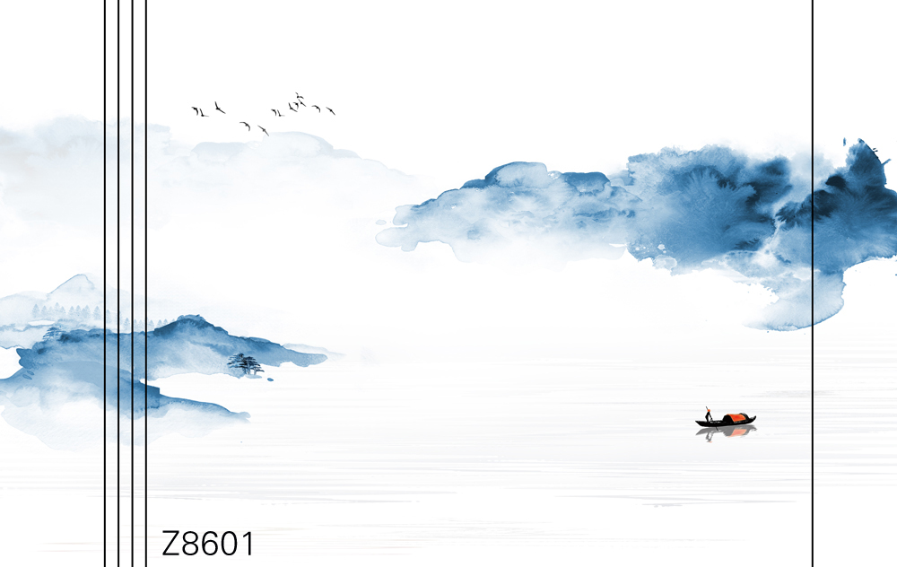 Z8606-新款原创简约意境整体大板山水小船飞鸟元素客厅电视沙发背景墙装饰画.jpg