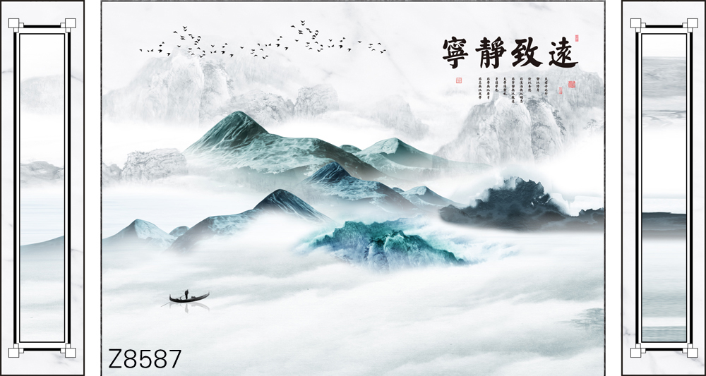 Z8587-新款原创轻奢意境整体大板山水小船飞鸟诗词元素客厅电视沙发背景墙装饰画.jpg