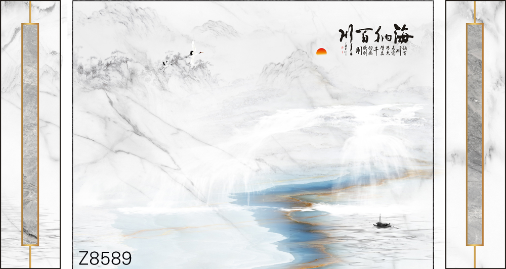 Z8589-新款原创轻奢意境整体大板山水小船仙鹤瀑布诗词元素客厅电视沙发背景墙装饰画.jpg