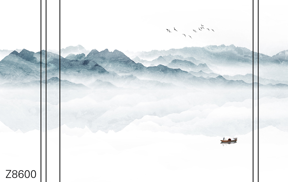 Z8600-新款原创简约意境整体大板山水小船飞鸟元素客厅电视沙发背景墙装饰画.jpg