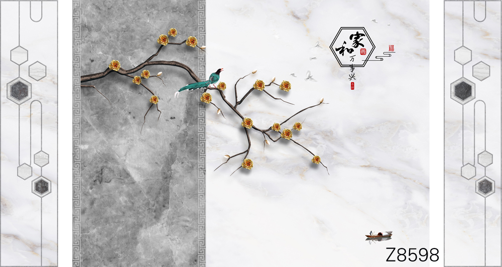 Z8598-新款原创轻奢意境整体大板石纹花枝小鸟小船元素客厅电视沙发背景墙装饰画.jpg