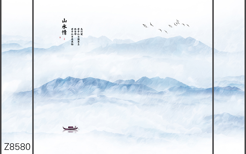 Z8585-新款原创轻奢意境整体大板山水小船飞鸟诗词元素客厅电视沙发背景墙装饰画.jpg